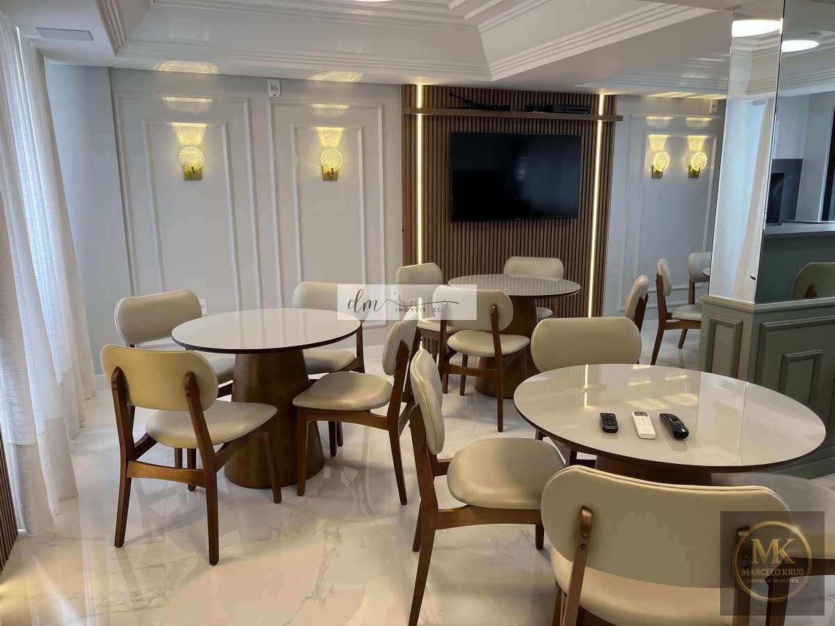 Salão de festas e espaço gourmet mobiliados e decorados